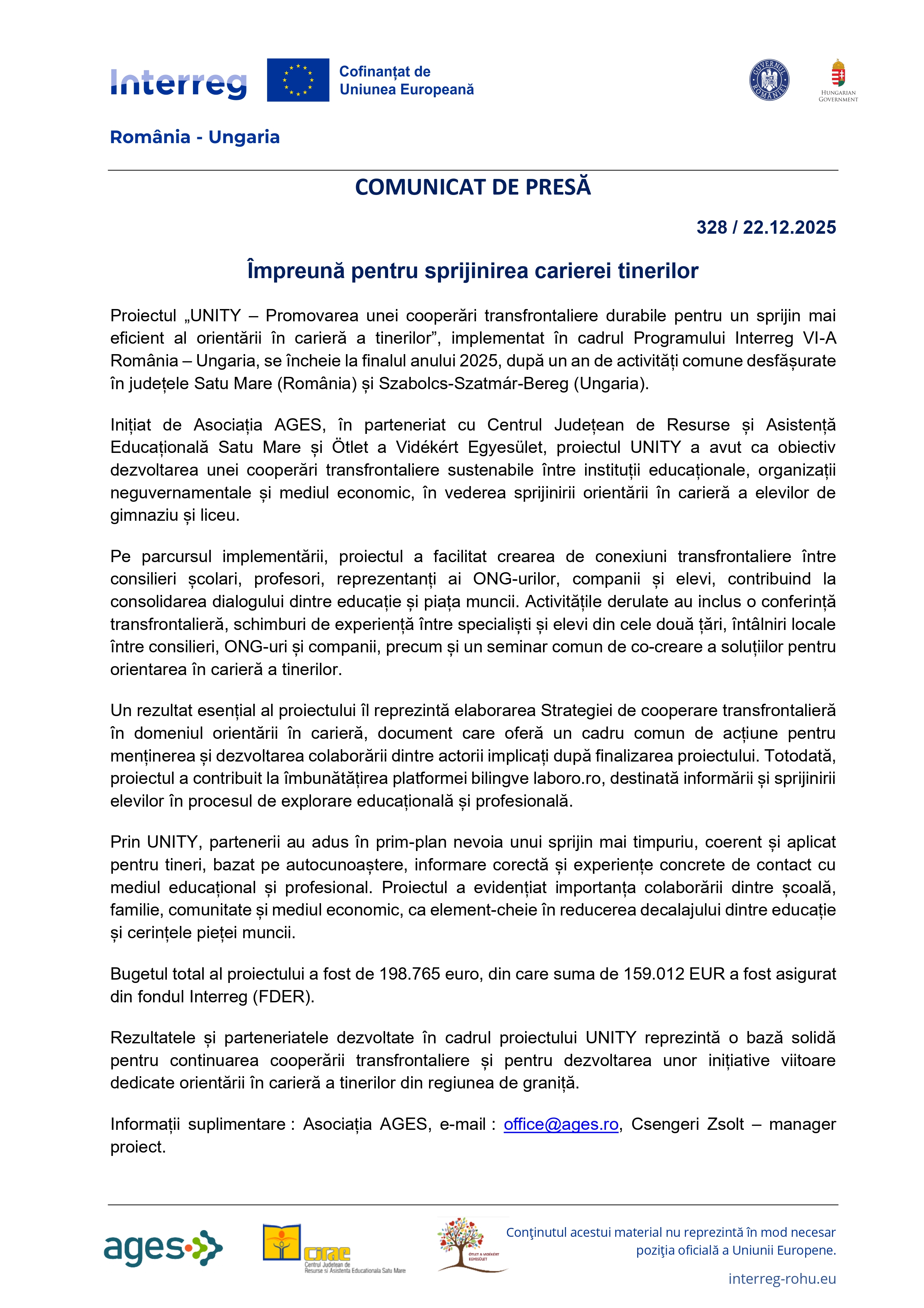 29 decembrie, 2025 - Comunicat de presă încheiere proiect